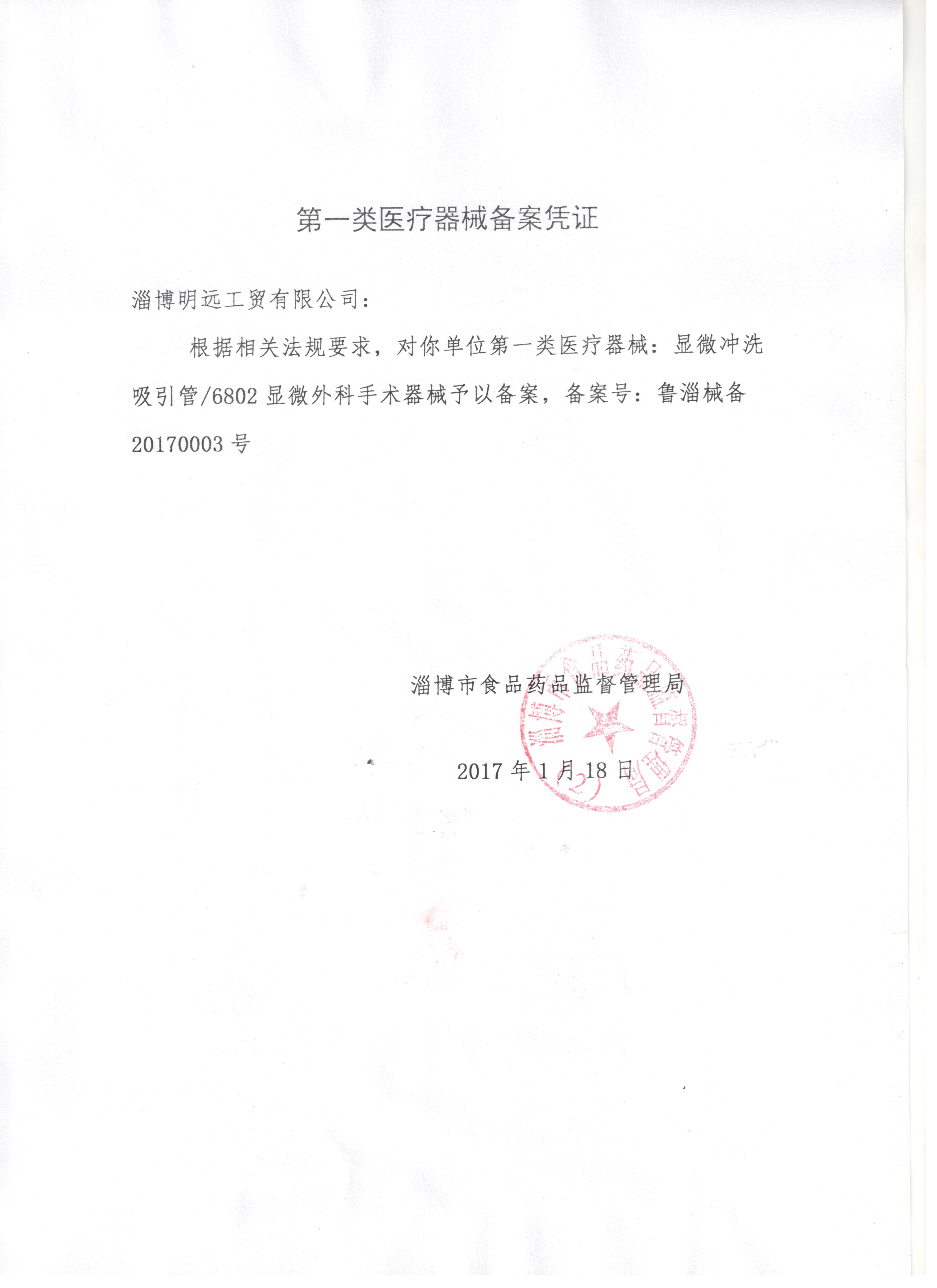 淄博明遠工貿有限公司 公司成立于2000年,是二類醫用穿刺器械專業生產廠家。公司以微創手術器械為發展方向,產品以各類特種穿刺針為主。我們以全方位的管理手段,嚴格地控制產品品質.歡迎您選用我公司產品并對我們的產品提出建設性的建議和意見.我們愿意成為您好的生意伙伴和知心朋友。